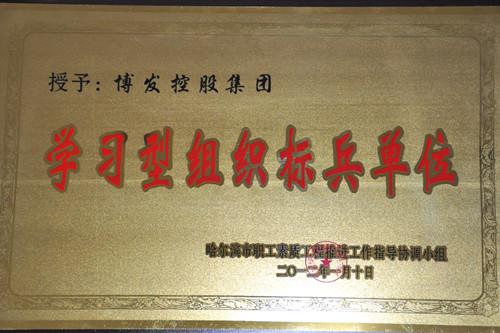 为了全面树立和落实科学发展观,提高职工思想道德素质、科学文化素质、职业技能素质和健康素质,哈尔滨市职工素质工程推进工作指导协调小组决定对全市涌现出来的先进集体进行表彰,博发控股集团在此次评选活动中,通过层层筛选,最终脱颖而出作为民营企业的代表,荣获哈尔滨市职工素质工程推进工作指导协调小组授予的“学习型组织标兵单位”称号。