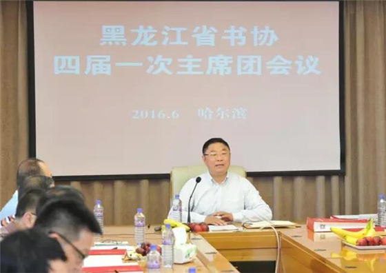 6月1日,黑龙江书法家协会第四届主席团第一次会议在哈尔滨召开。会上,黑龙江省文联党组成员、副主席、中国书协理事、西泠印社理事、省书法家协会主席张戈主持了会议,并提出了黑龙江省书协2016年下半年工作要点。大家集思广益,对工作要点进行了热烈讨论,并提出了许多好的建议。全国人大代表、全国工商联执委、黑龙江省工商联副主席、黑龙江省海外联谊会副会长、黑龙江省书法家协会副主席、黑龙江省画院书法院副院长、博发康安控股集团董事局主席兼党委书记陆标先生出席此次会议。