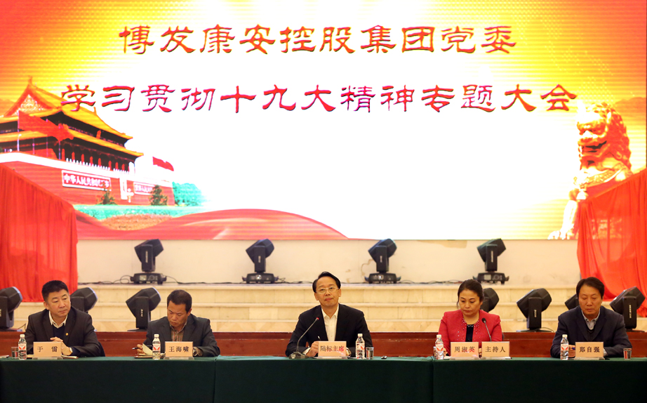 11月1日,博发康安控股集团党委在集团子公司——博发文化创意产业园召开学习贯彻党的十九大精神专题大会。参加大会的有:黑龙江省工商联副主席、博发康安控股集团党委书记、董事局主席陆标,集团总经理兼博发金融投资集团董事长周淑英,集团党委副书记、博发商贸集团董事长于雷,集团副总经理兼博发文化产业集团董事长王海啸,集团副总经理兼博发电站集团董事长郑自强,集团党委成员、党员、集团高管及旗下20余家子公司代表近百人出席了会议,大会由周淑英总经理主持。