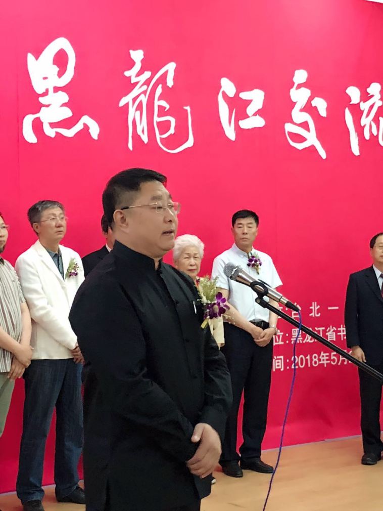 2018年5月21日上午,由台湾中国书法学会和黑龙江省书法家协会共同主办的“台湾书法黑龙江交流展”在哈尔滨兆麟街123号展馆召开。省委宣传部副部长刘维宽、省台办主任郭龙川,省文联党组成员、副主席、省书协主席张戈,省文联副主席、哈尔滨市文联党组书记、主席王立群,以及省文联、省书协领导及社会各界书法人士近200余人参加活动。台湾女书法家学会荣誉理事长、中国书法学会第 15、16届理事长谢季芸女士,中国书法学会监事主席、一德书会会长郭先伦、中国书法学会理事长、十方艺术学会创办人叶国华带领的40余位书家出席了开幕式。十二届全国人大代表、黑龙江省书法家协会副主席、黑龙江省工商联副主席、博发康安控股集团董事局主席陆标先生出席并主持本次活动。
